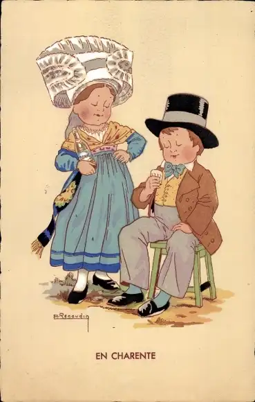 Künstler Ak En Charente, Paar in Trachten