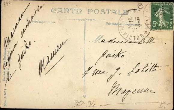 Zustand, siehe Scan, gelaufen, 1915 - ca 14 cm X 9 cm