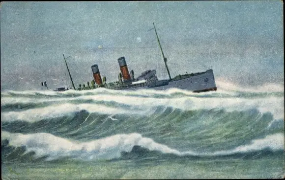 Künstler Ak En Mer, en Perdition, Dampfer in Seenot