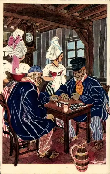 Künstler Ak En Parcourant la Normandie, la partie de Dominos