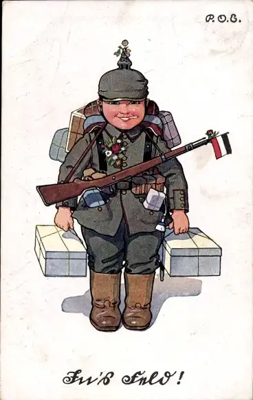 Künstler Ak Engelhard, P.O.E., In's Feld, Soldat zieht in den Krieg