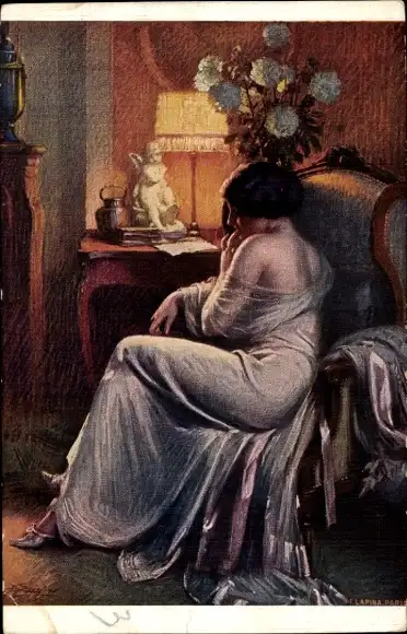Künstler Ak Enjolras, Nachdenkliche Frau