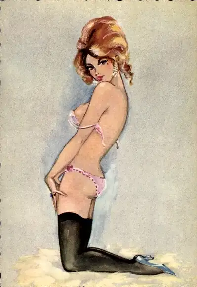 Künstler Ak Erotik, knieende Frau in Unterwäsche, Strümpfe