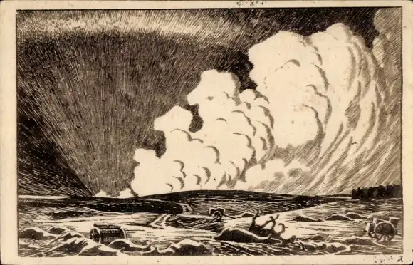 Künstler Ak Explosion auf einem Schlachtfeld, I. WK, Deutsches Rotes Kreuz