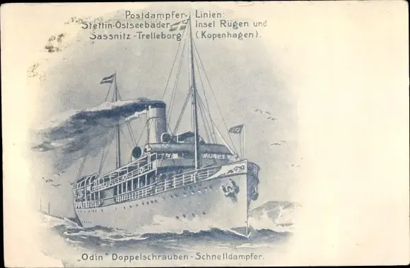 Künstler Ak Fährschiff Odin, Reederei Braeunlich Stettin
