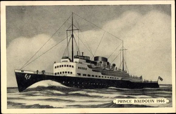 Künstler Ak Fährschiff Prinz Baudouin, 1946, Mut zum Letzten