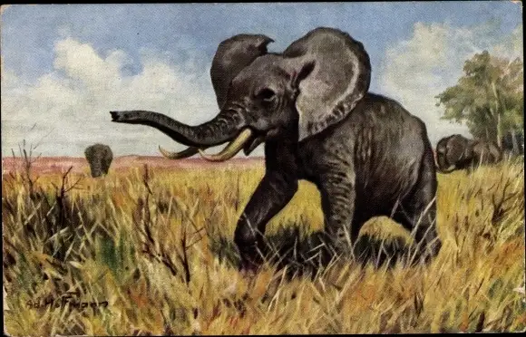 Künstler Ak Fauna in Afrika, Tierwelt, Elefant
