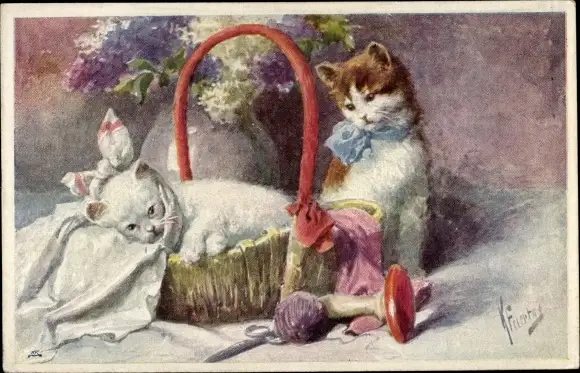 Künstler Ak Feiertag, K., Das kommt vom Naschen, Kätzchen, Korb, BKWI 170 3