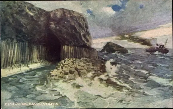 Künstler Ak Fingals Cave Staffa Schottland, Höhle, Schiff