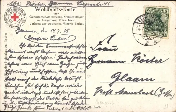 Zustand, siehe Scan, gelaufen, 1915 - ca 9 cm X 14 cm