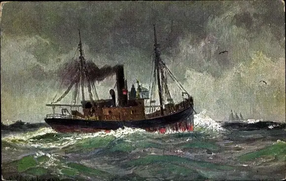 Künstler Ak Fischerboot, Fischkutter, Fischfang