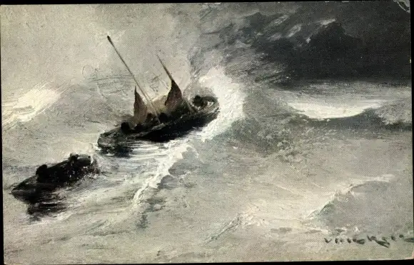 Ansichtskarte, Postkarte, Fischfang, Fischer, Angler, Perlenfischer, Fischerboot
