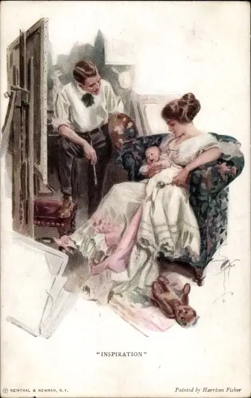 Künstler Ak Fisher, Harrison, Inspiration, Mutter mit Kind, Maler, Teddybär