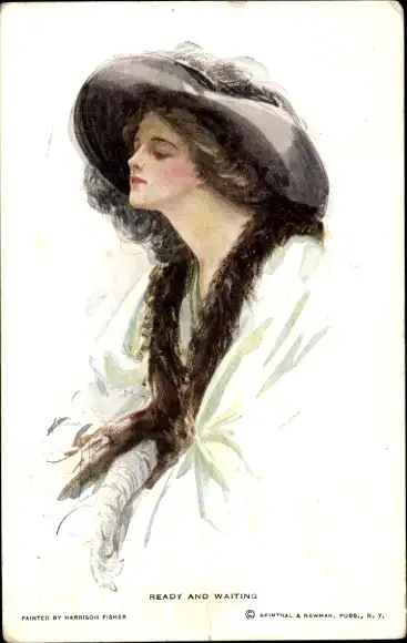 Künstler Ak Fisher, Harrison, Ready and Waiting, Frau, Hut