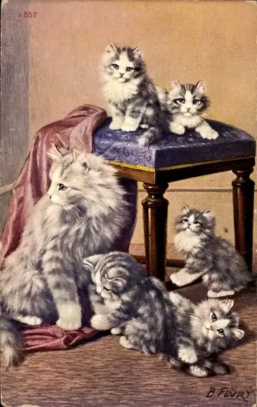 Künstler Ak Fivry, B., Katzenfamilie, Kätzchen