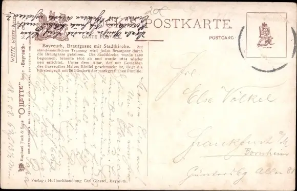 Künstler Ak Flower, C., Bayreuth in Oberfranken, Brautgasse, Stadtkirche