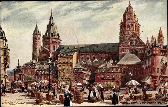 Künstler Ak Flower, Charles, Mainz am Rhein, Dom, Marktplatz