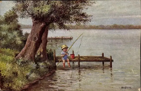 Künstler Ak Frank, Elly, Der kleine Sportsmann, Junge beim Angeln