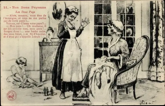 Künstler Ak Frankreich, Dienstmädchen, Mutter mit Kind