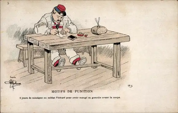 Künstler Ak Französischer Soldat schreibt einen Brief, Werbung Biscuits Germain