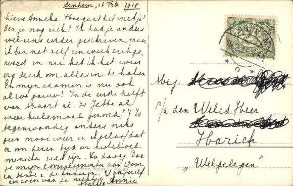 Zustand, siehe Scan, gelaufen, 1915 - ca 3 cm X 5 cm