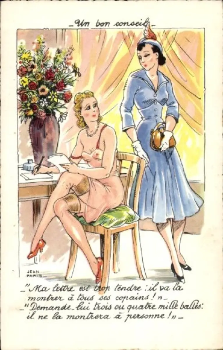 Künstler Ak Frau im Unterkleid schreibt einen Brief, Strümpfe