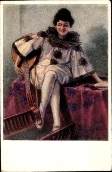 Künstler Ak Frau mit Laute, Kostüm, Gemaltes Porträt