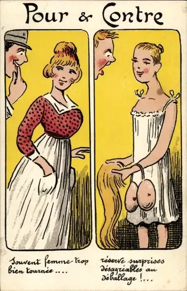 Künstler Ak Frau mit Perücke und BH Einlagen