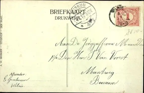 Zustand, siehe Scan, gelaufen, 1910 - ca 3 cm X 5 cm