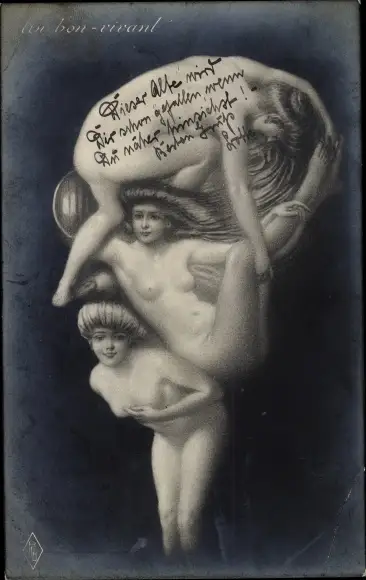 Künstler Ak Frauenkörper, Männergesicht mit Monokel, Metamorphose, Un bon vivant
