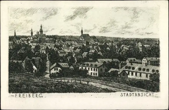 Künstler Ak Freiberg in Sachsen, Stadtansicht