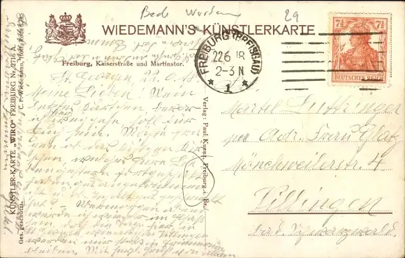 Künstler Ak Freiburg im Breisgau, Kaiserstraße, Martinstor