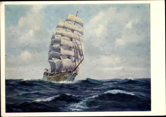 Künstler Ak Fürst, C., Segelschiff, Viermastbarke in stürmischer See