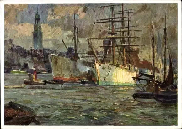Künstler Ak Gabel, P. E., Hamburg, Hafenpartie, Segelschiff