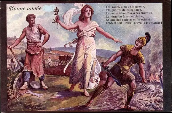 Künstler Ak Gautschi, Glückwunsch Neujahr, Bauer, Handwerker, Mars