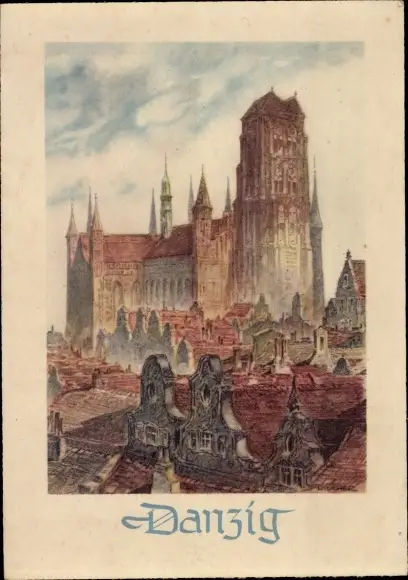Künstler Ak Gdańsk Danzig, Ortsansicht, Marienkirche