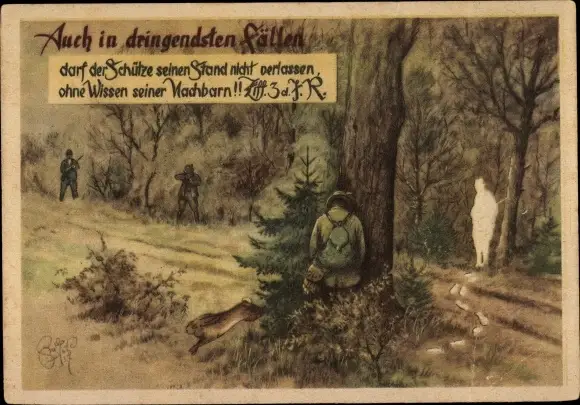 Künstler Ak Geilfus, Auch in dringendsten Fällen darf der Schütze seinen Stand, Jäger, Jagdunfall
