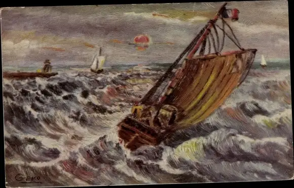 Künstler Ak Geko, Segelboot auf schwerer See