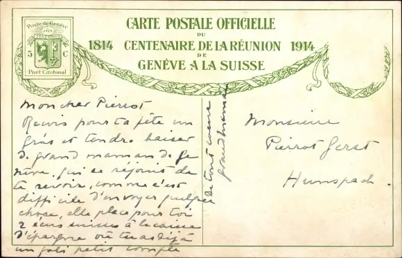 Künstler Ak Genève Genf, Porte de Rive, colonel de Girard, Centenaire de la Reunion 1914