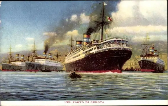 Künstler Ak Genova Genua Liguria, Dampfschiffe im Hafen, Lloyd Sabaudo, I Glorioso Conti