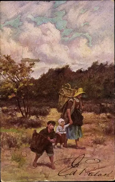 Künstler Ak Gerstenhauer, J. G., Familienbild, Mutter mit Kindern, Körbe, Wiese