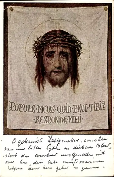 Künstler Ak Gesicht Jesu mit Dornenkrone