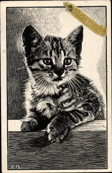 Künstler Ak Getigerte Katze, Gemaltes Porträt