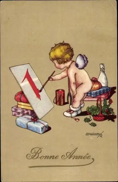 Künstler Ak Glückwunsch Neujahr, Fee, Kalender, Geschenke