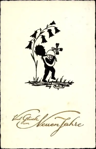 Künstler Ak Glückwunsch Neujahr, Kind mit Kleeblatt, Blume