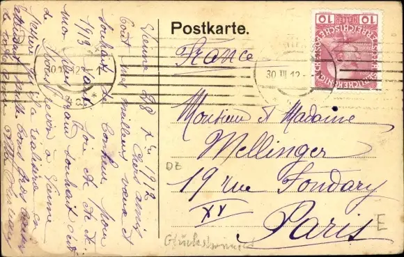 Zustand, siehe Scan, gelaufen, 1912 - ca 9 cm X 14 cm