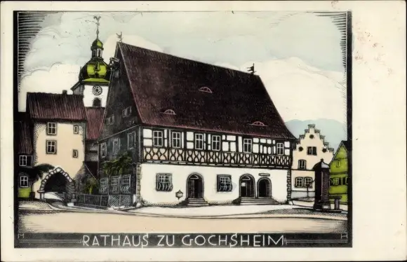 Künstler Ak Gochsheim Unterfranken, Rathaus