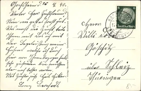 Zustand, siehe Scan, gelaufen, 1940 - ca 14 cm X 9 cm