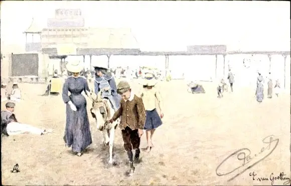 Künstler Ak Goethem v., Strandleben, Strandskizzen, Kind auf Esel reitend