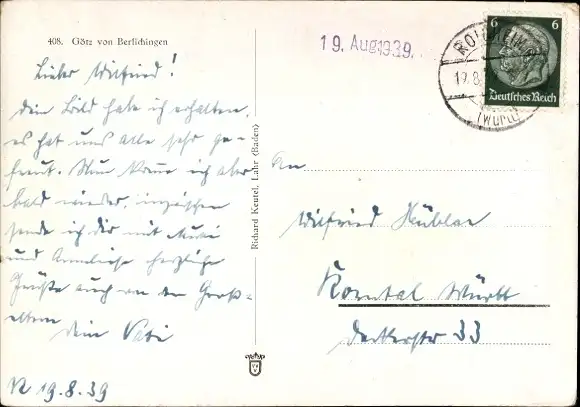 Zustand, siehe Scan, gelaufen, 1939 - ca 10 cm X 14 cm